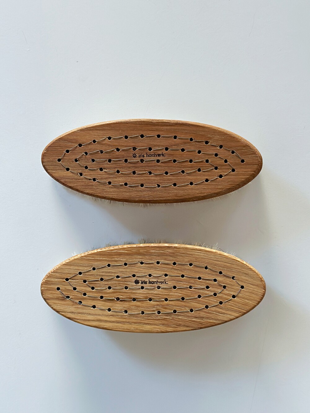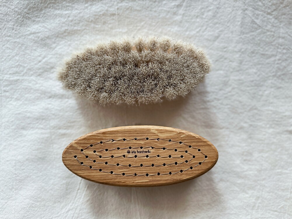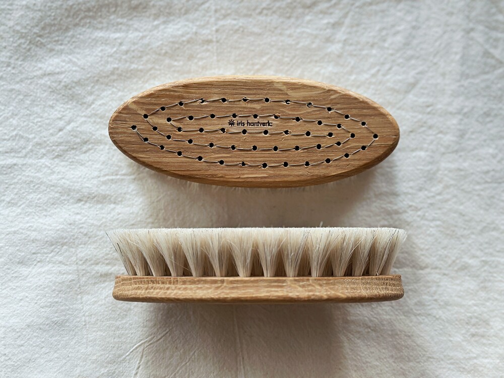 이리스 한트베르크는 그들의 수제 브러시가 앞으로도 오랫동안 계속해서 즐거움을 선사할 수 있기를 바랍니다. 조금만 관리하면 아름답게 늙어갈 것입니다. 사용하고나면 세제와 따뜻한 물로 브러시를 청소하십시오. 이후 완전히 말려 건조시키고 때때로 나무핸들에 오일을 바르십시오. 오일을 완전히 건조시킨 이후 브러시를 사용해주세요.