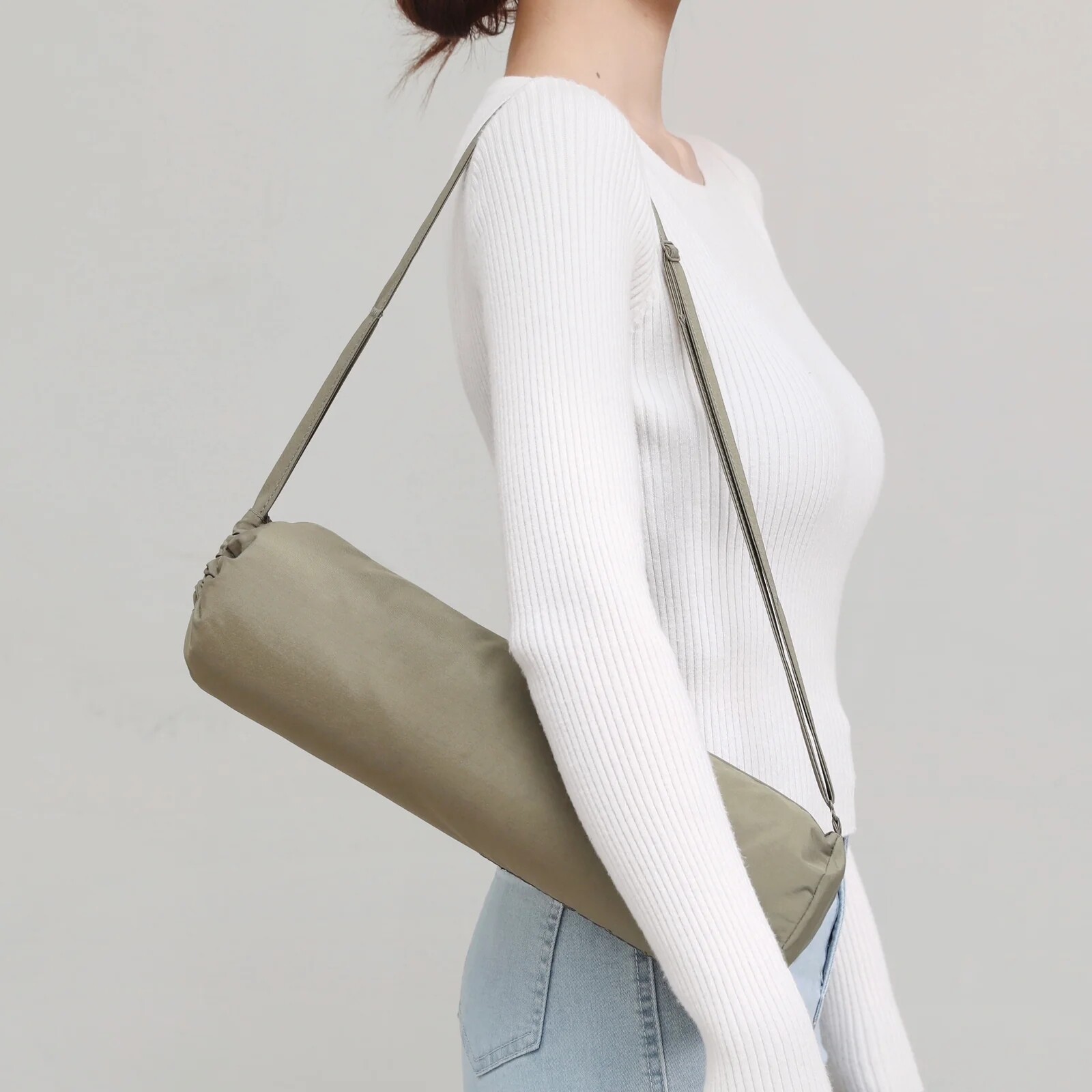 조절 가능한 스트랩이 있어 크로스바디 형태로 착용할 수 있으며, 도시 산책이나 외출 시 가볍게 들고 다니기 좋습니다.