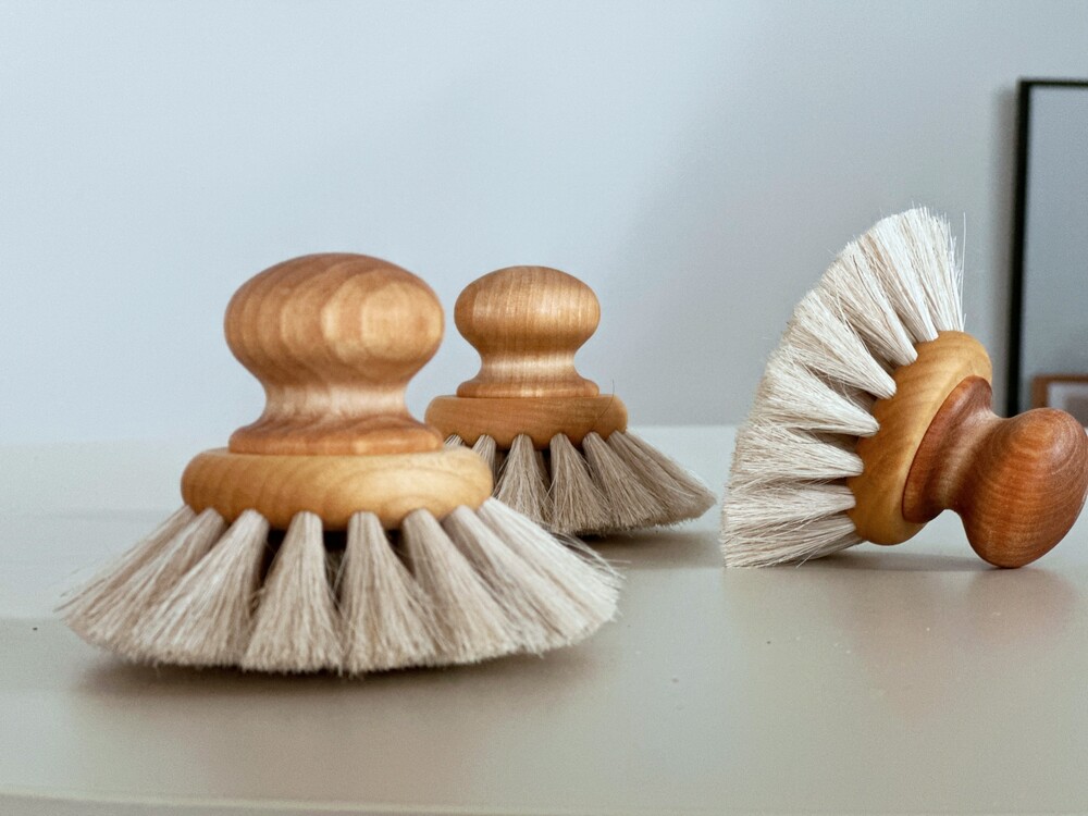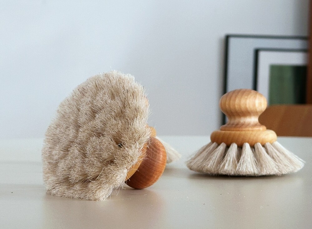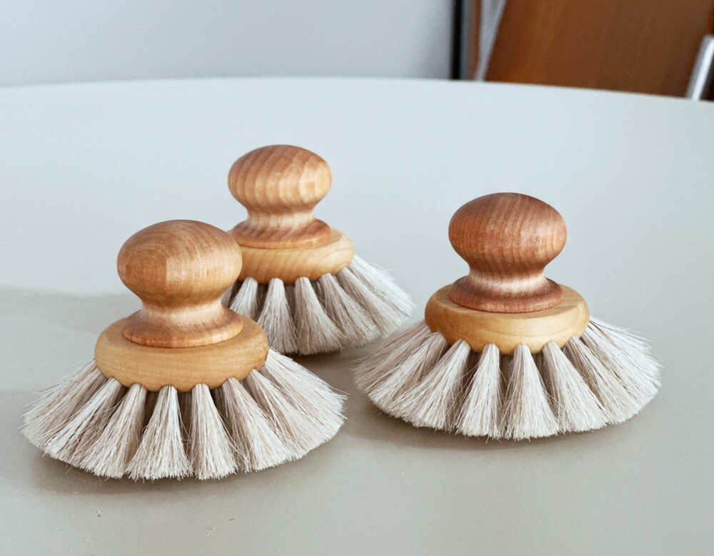 Dish brush in birch and horse hair. Round brush with a good grip that is suitable for washing cups, tubs, and pots.