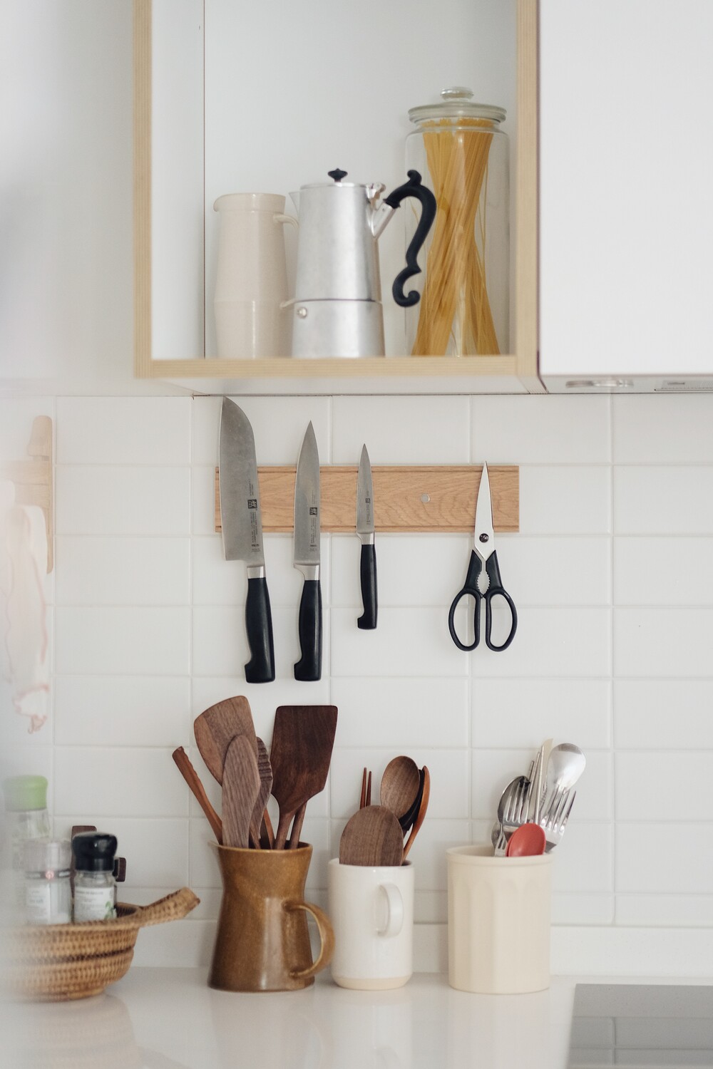 금속으로 만들어진 칼, 가위 등 다양한 금속도구들을 멋스럽게, 편리하게 거치할 수 있는 나이프렉입니다.