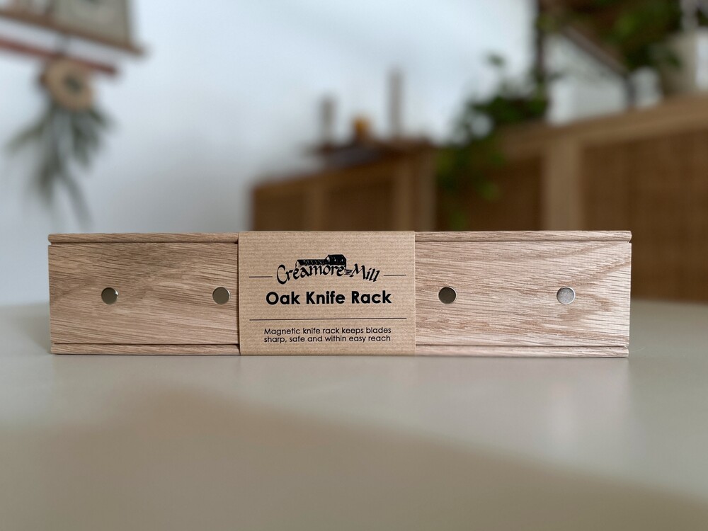 오크로 만들어진 나이프렉은 자석이 매입되어 있어서 그 부분에 금속성 도구를 거치할 수 있습니다.